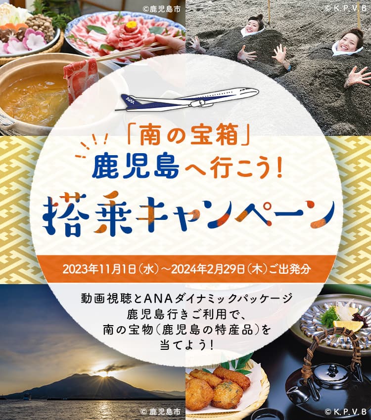 キャンペーン期間中にANAダイナミックパッケージ(ANAまたは提携旅行会社)で鹿児島行きANA対象便にご搭乗された、日本在住ANAマイレージクラブ会員の方(ただし、鹿児島県在住の方は対象外)