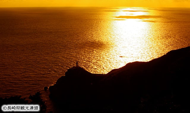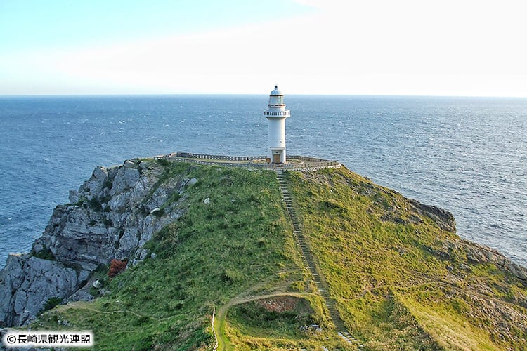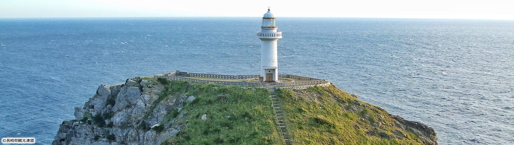 大瀬埼灯台周辺には「灯台を見るための展望所」があり、晴れた日には男女群島も一望できます。展望台から望む白亜の灯台と東シナ海に沈む夕陽は言葉にできないほどの美しさ。