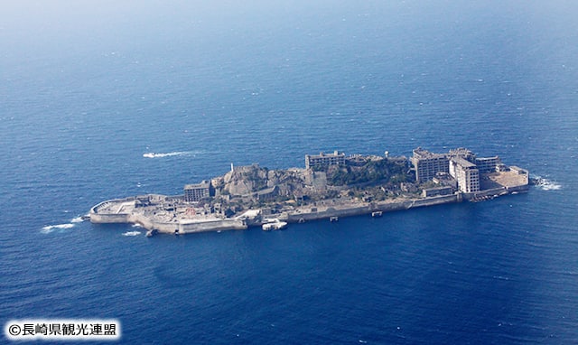 長崎港から船で約40分のところに位置する端島(はしま)。小さな海底炭坑の島は、岩礁の周りを埋め立てて造られた人工の島です。岸壁が島全体を囲い、高層鉄筋コンクリートが立ち並ぶその外観が軍艦「土佐」に似ていることから「軍艦島」と呼ばれるようになりました。2015年7月世界文化遺産「明治日本の産業革命遺産 ~製鉄・製鋼、造船、石炭産業~」として正式登録されました。