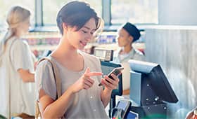 ANA FESTAに設置のセルフレジ 及び 無人決済店舗ANA FESTA GOでは、お客様ご自身でANAカードを読み取り機に通していただきます。