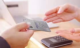 ANA FESTAでは、店舗従業員がANAカードをお預かりして読み取り機に通します。