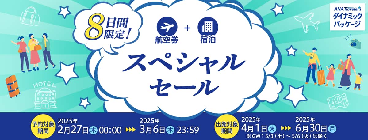 | 予約対象商品 | ANAトラベラーズダイナミックパッケージ(国内) |