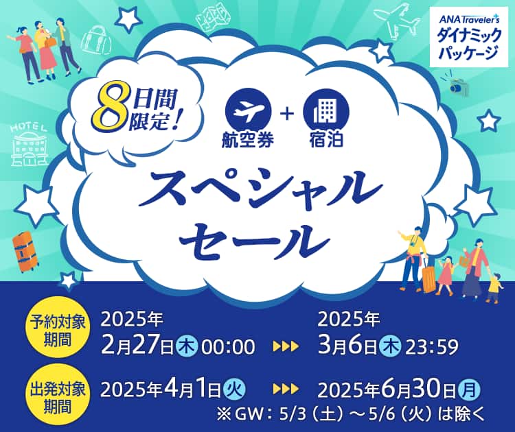 | 出発対象期間 | 2025年4月1日(火)~2025年6月30日(月)* GW:5/3(土)~5/6(火)は除く |