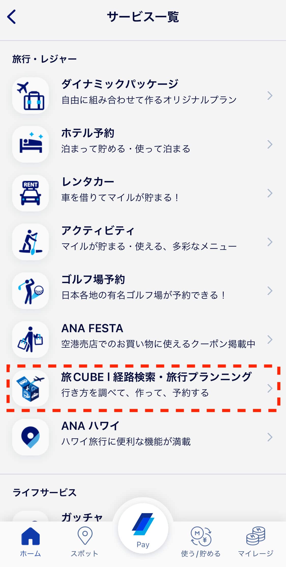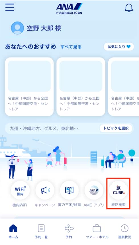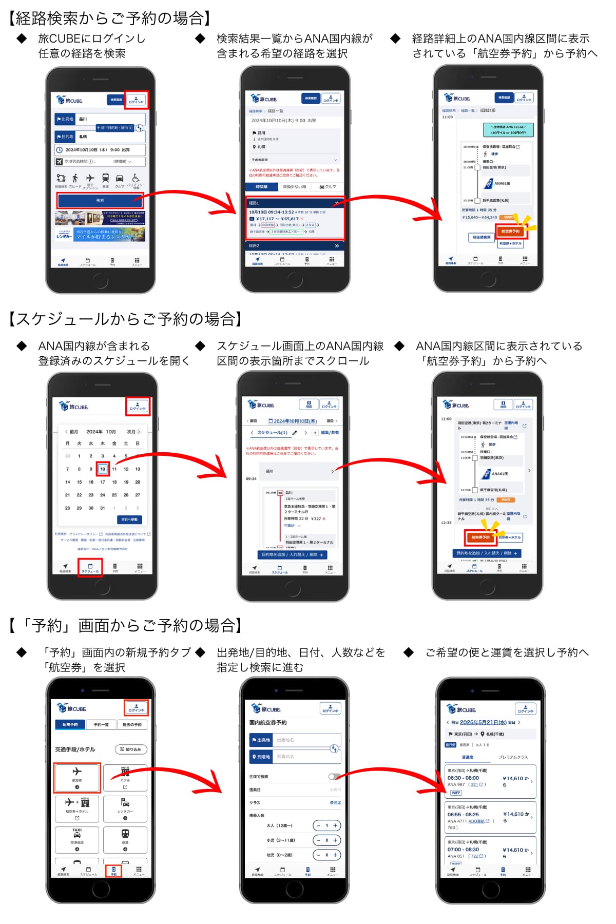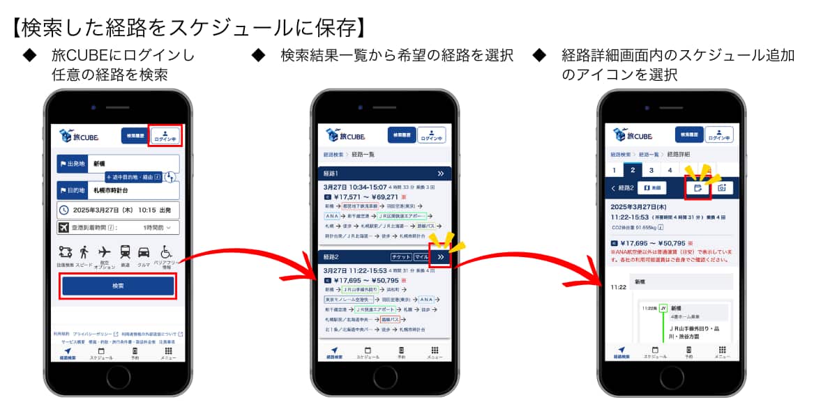 旅CUBEのスケジュールに検索した経路を保存する、旅CUBE内でANA国内線航空券/旅CUBE商品を購入するためには、旅CUBE会員(無料)に登録していただく必要があります。