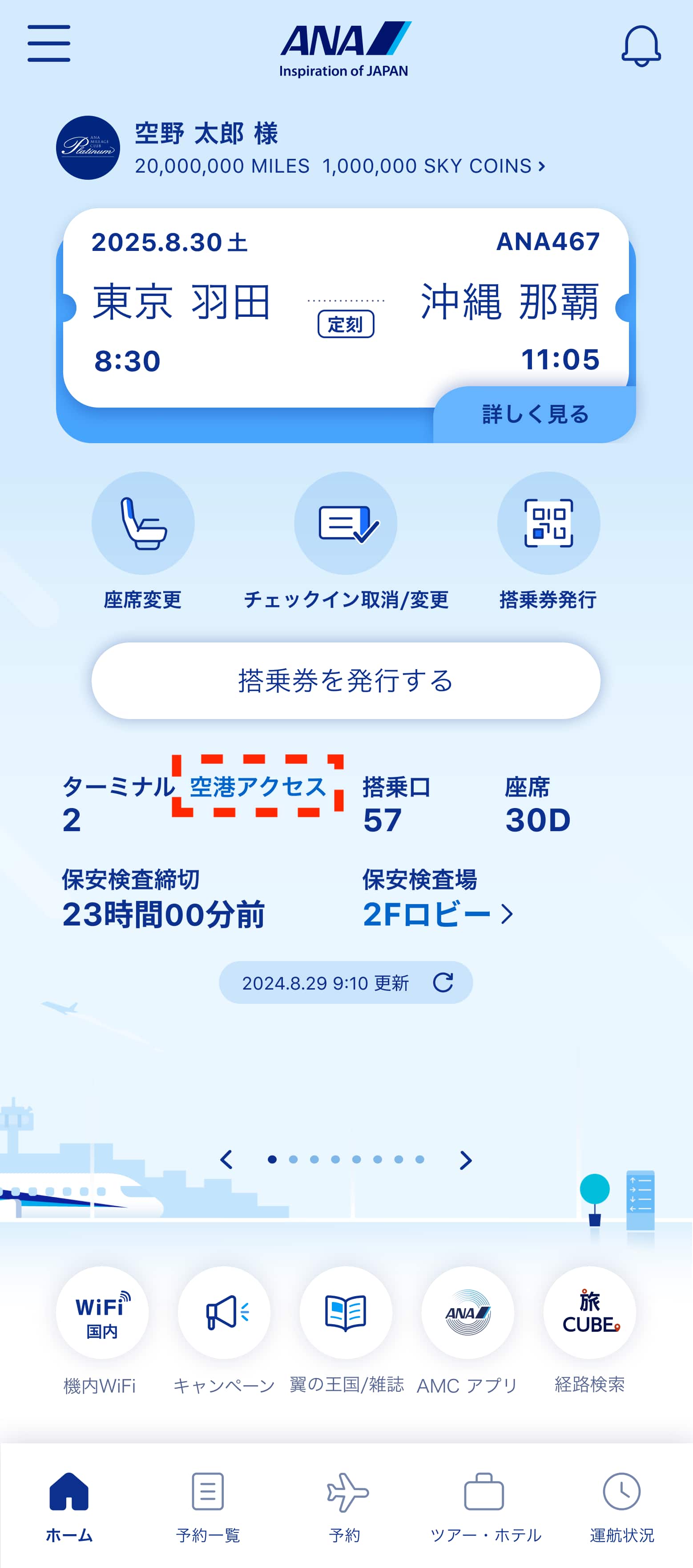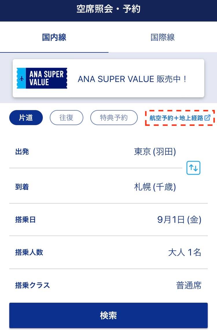 「空席照会・予約」タブの「航空予約+地上経路」をタップ!!
