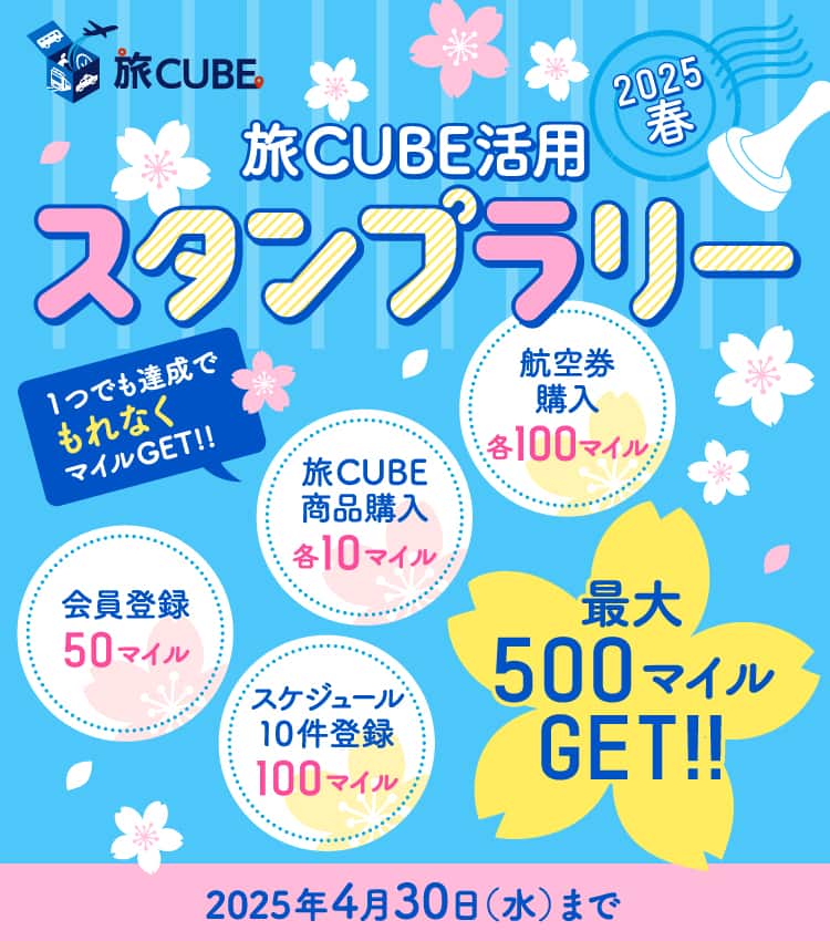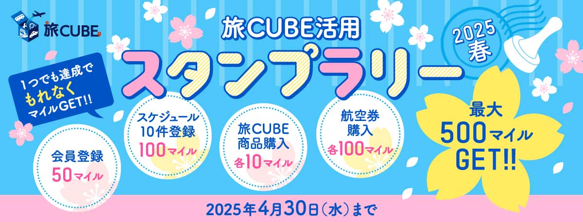 2025年2月3日(月)~2025年4月30日(水)23:59(日本時間)旅CUBE会員登録またはスケジュール保存/ANA国内線航空券購入/旅CUBE商品購入分まで