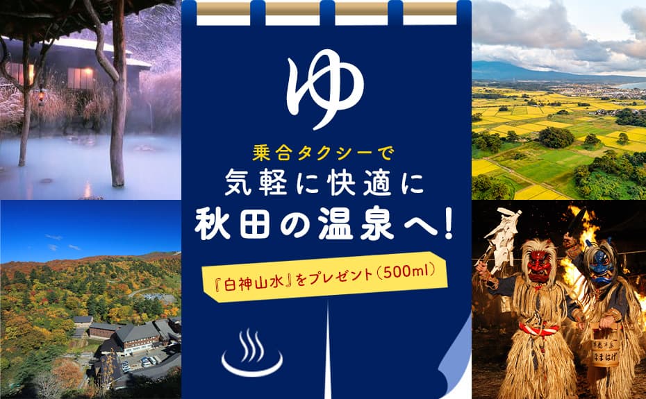 秋田エアポートライナー(乗合タクシー)号は、『「旅CUBE」の空港アクセス検索』からのお申し込みが可能です!対象期間中に利用者全員に世界自然遺産の森が蓄えた生命の水『白神山水』ペットボトル500mlをお一人様1本プレゼント!