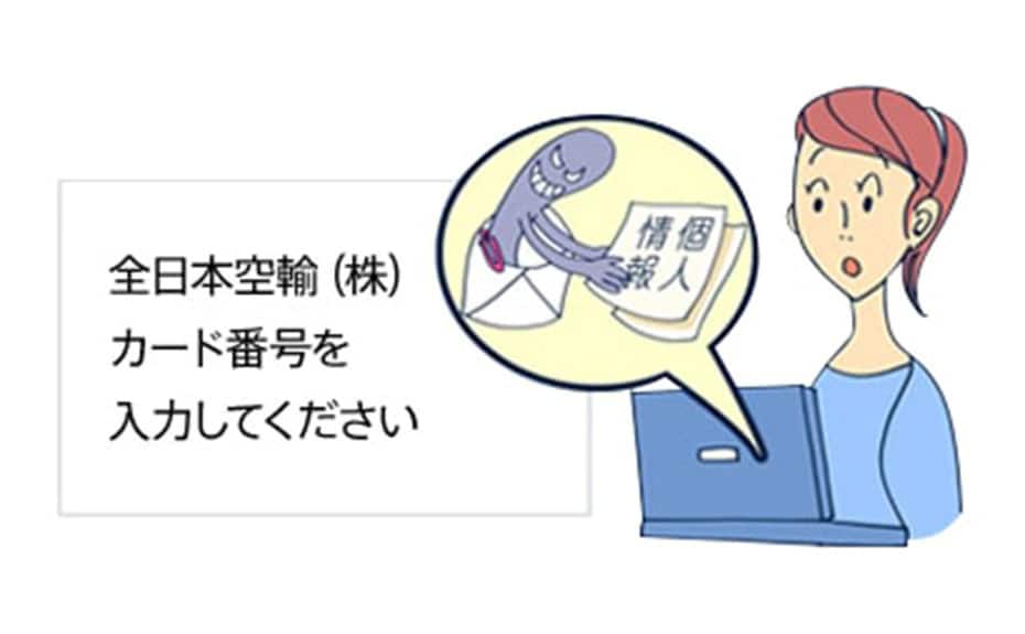 以下のような手口で、ANAを装い、お客様の個人情報を盗み出すフィッシング詐欺が発生しております。覚えのないメールが届いた場合は、すみやかに削除いただきますようお願いします。(添付ファイルを開いたり、メール本文中に記載されているリンクはクリックしないようにお願いします)