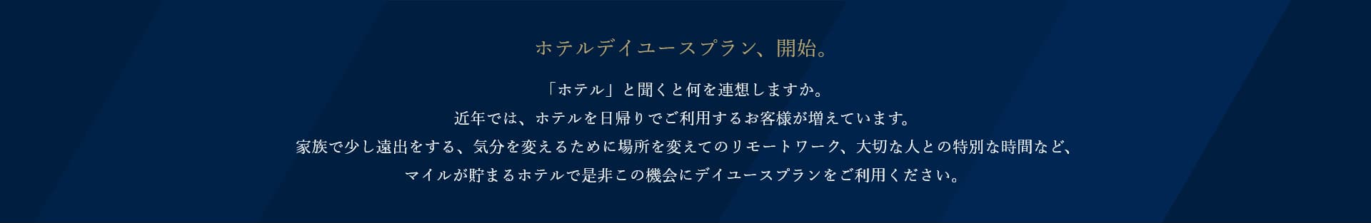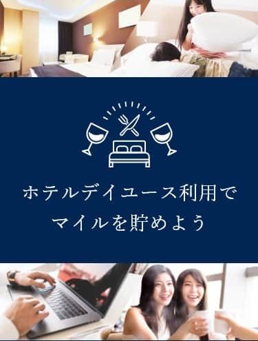 | マイル積算方法 | STEP 1 ご予約時 デイユース積算対象ホテルをご予約 ※デイユース積算対象ホテル一覧ならびに本ページに掲載の各ホテルリンク先に掲載のない施設はデイユースプラン利用時もマイル積算対象外となります。 STEP 2 チェックイン チェックイン時に、フロントでANAカード、またはANAマイレージクラブカードをご提示 ※ご予約時にANAマイレージクラブお客様番号をお申し出いただいただけでは、マイルは積算されません。 ※お支払いをANAカードでされても自動的にマイルは積算されませんのでご注意ください。 ※ホテルチェーンにより、事前にポイントプログラムにご入会いただき「ANAマイレージクラブ」を自動移行先にお選びいただく必要がございます。 ※チェックイン時の手続等詳しくは各ホテルチェーンのお問い合わせ先にてご確認ください。 STEP 3 チェックアウト チェックアウト時に、会員名義のご利用料金領収書をホテルから受け取る ※マイル積算が確認されるまで、ご利用料金領収証をお手元に保管ください。 STEP 4 ご利用後1~2ヵ月 マイル積算 ※ご利用後、マイル積算が確認されるまで、約1〜2カ月を要します。 |