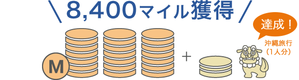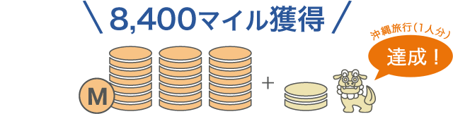 実は、普通に日常生活を送るだけで、1年後にはひとり分の東京・沖縄間の往復の旅費をマイルだけでまかなえちゃうんです。(18,000マイル、レギュラーシーズンの場合)
