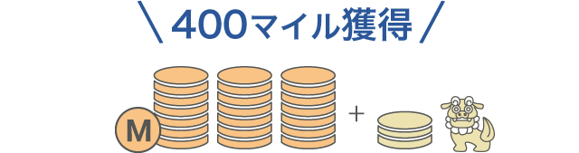たとえばふるさと納税で、お肉やお米などの返礼品4万円分を申し込んだとしましょう。そうすれば100円1マイルですから、400マイル獲得することができますよ。