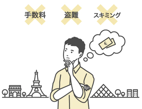 自分の預金口座に貯めてあるお金を、現地のATMから現地通貨に替えて引き出せるので、両替の手間がありません。