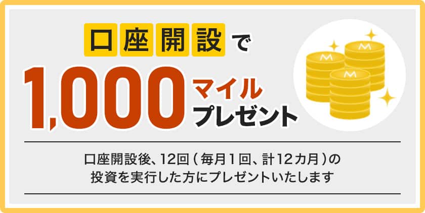 ひと月に1,000マイルの投資が可能です。