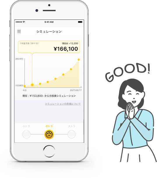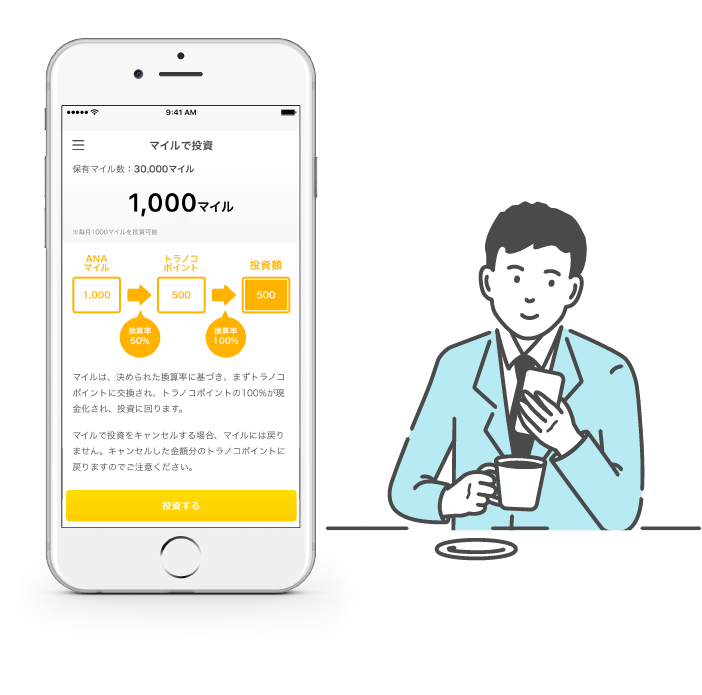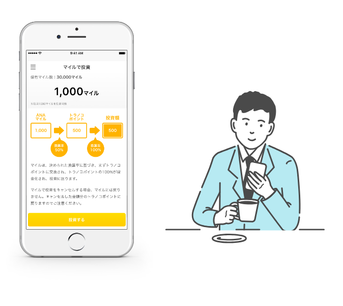アプリからカンタンに投資できてとっても便利だし、毎月5マイルプレゼントもありがたいな!
