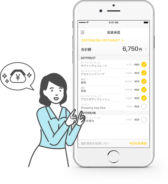 買い物で貯めたマイルも投資できるし、おつりでも投資できるから、