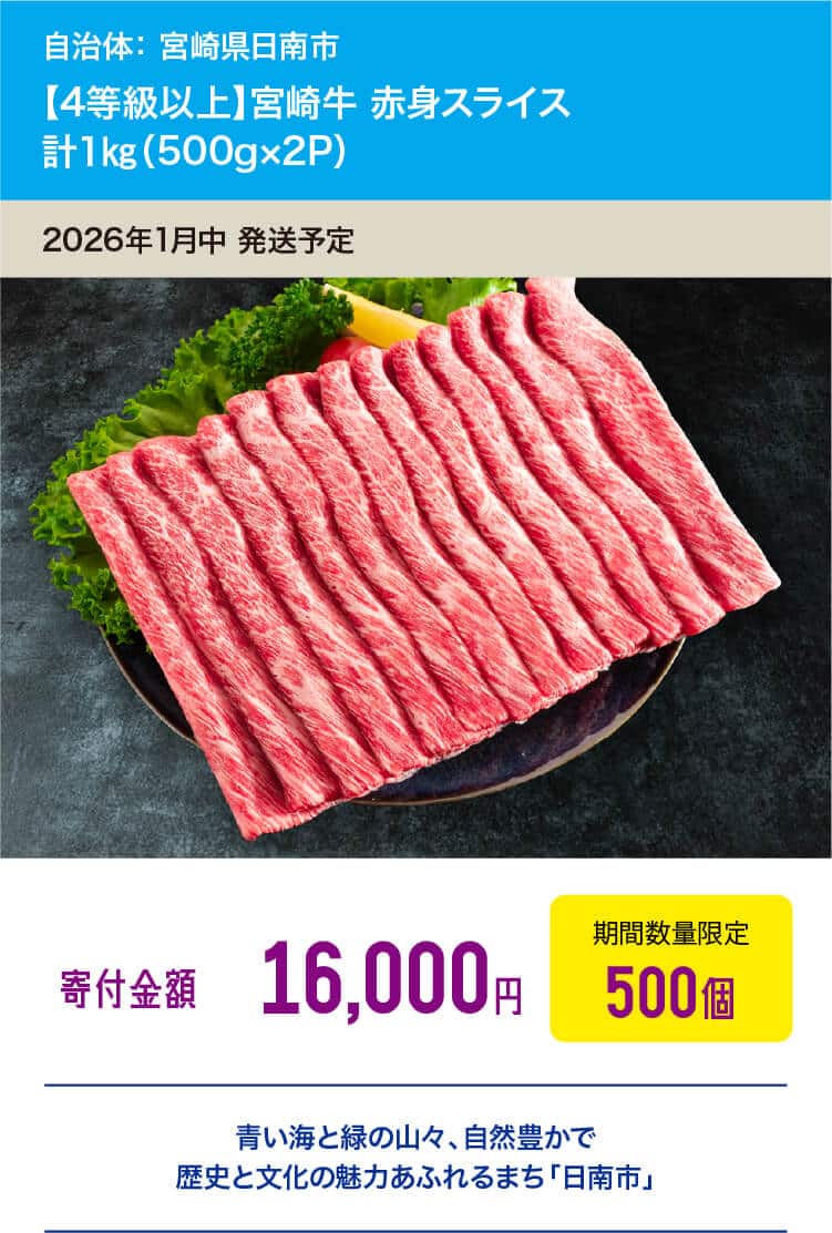 宮崎県が誇る最高級のブランド牛『宮崎牛』!!肉質等級4等級以上の『宮崎牛赤身肉』をスライスにて数量限定でご用意いたしました。赤身肉はロースやヒレなどの部位に比べ、脂質が少ないため、ほどよい弾力で赤身本来の旨味を楽しめます!!また、すき焼き、しゃぶしゃぶ、肉じゃがなど様々な用途でお楽しみいただけます。この機会に、ぜひ日南市自慢の絶品!!『宮崎牛赤身肉』をご堪能ください。