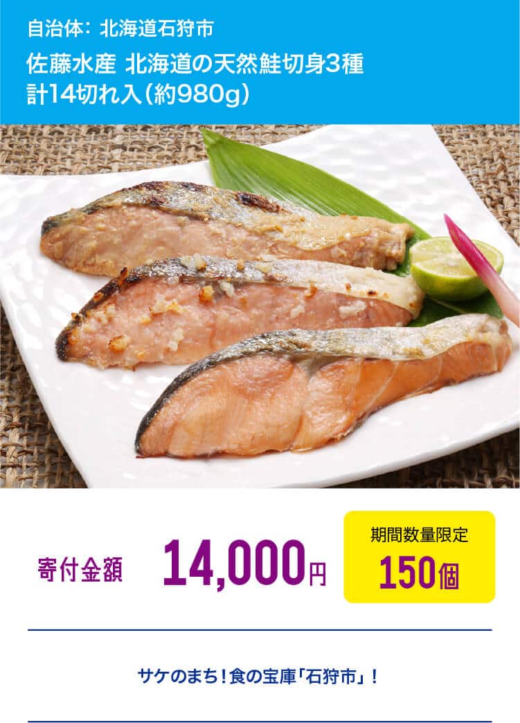北海道の9月~10月に獲れた秋鮭で、塩・味噌・糀(さざ浪漬)の3つの味の切身に製造しました。3種で合計14枚。2枚入り、3枚入りと食べきりサイズ。秋鮭は川から大海へと回遊し、3~5年後に母川に帰ってきます。まだ川に遡上前の海で定置網で漁獲、鮮度の良いうちに自社の工場でさばいた新鮮な原料を使用しています。天然の秋鮭はヘルシーで高たんぱく!毎日の食卓におすすめです。