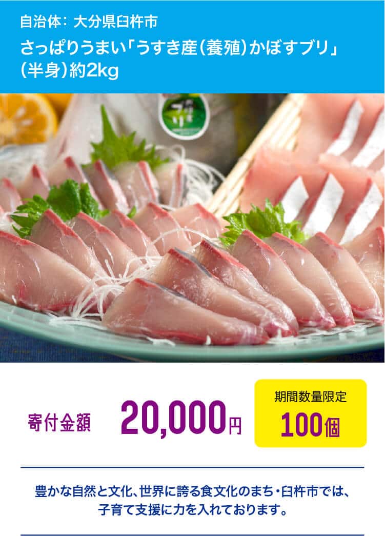 「かぼすブリ」とは、えさにカボスを混ぜて与えることにより、臭みを感じないさっぱりした肉質を楽しめる大分県を代表するブランドフィッシュです。大分県を代表する特産品「カボス」には抗酸化作用を持つポリフェノールやビタミンCが含まれているため、変色を抑えるだけでなく、さっぱりと臭みの少ない肉質を実現できます。一般的な養殖ブリに比べて、脂がしつこくなくさっぱりしているため、ブリの刺身が苦手な人でも美味しく召し上がっていただけます。しかも、当返礼品は3枚おろしにしてから真空パックに入れてお届けするため、非常に便利です。刺身に、ブリ大根に、ブリしゃぶに、ブリカルパッチョに、さまざまな料理でお楽しみください。