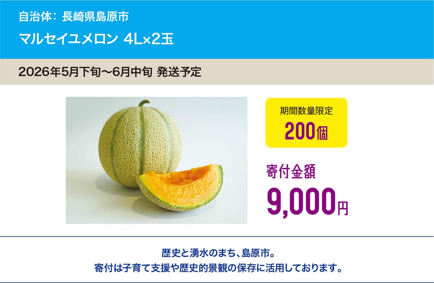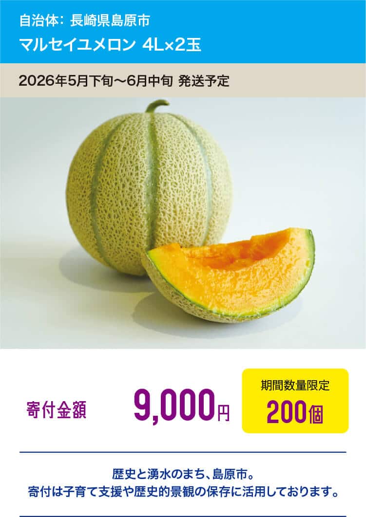 長崎県島原市が誇るマルセイユメロン「島原風香」は、雲仙・普賢岳の肥沃な大地と名水百選の湧水で育まれたメロンです。網目模様に濃い緑の縞が入った美しい見た目と、糖度15度前後の濃厚な甘みが特徴。箱を開けた瞬間に広がる豊かな香りと、とろけるような赤肉の口当たりは、まさにぜいたくそのものです。地元の若手農家が情熱を込めて育てた、先行予約必須の希少な味わい。大切な方への贈り物や自分へのご褒美に、島原の風を感じるおいしさをぜひ。