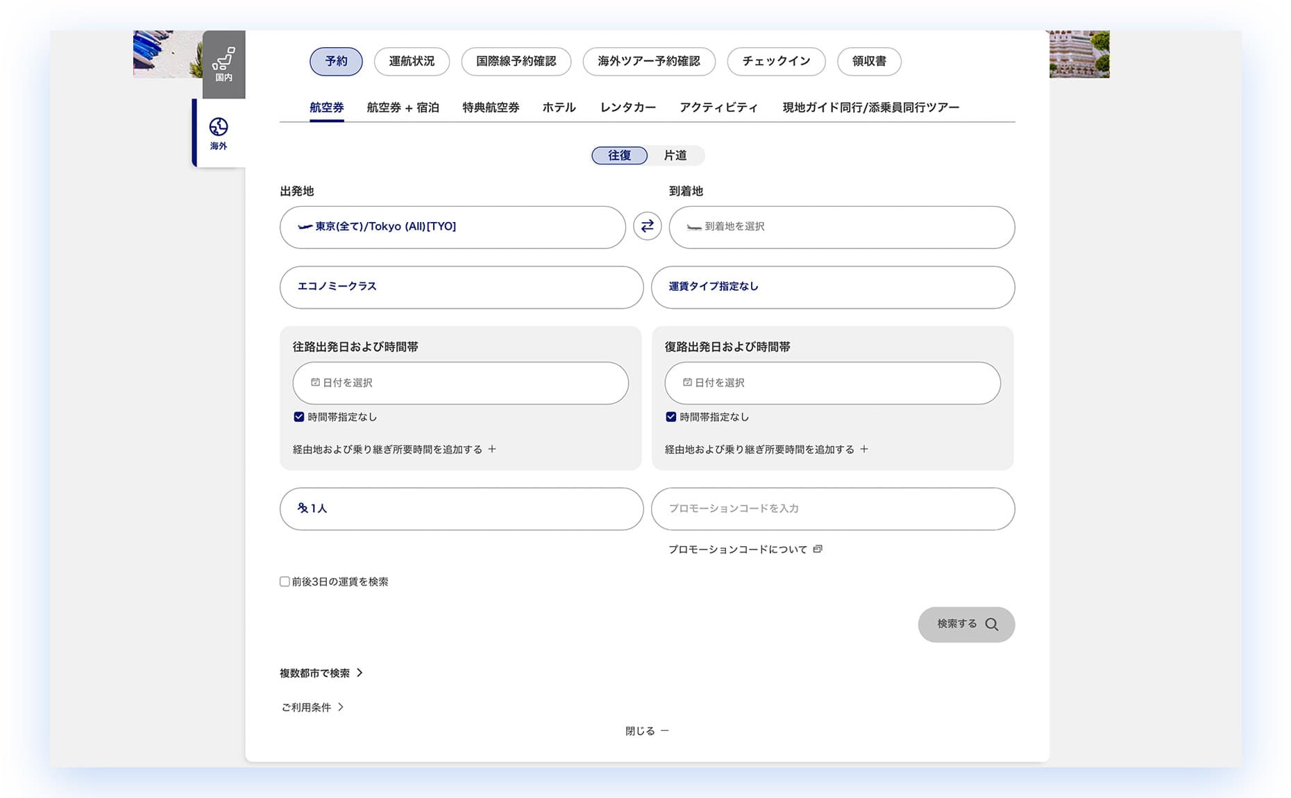 また、国内線でも都市名・空港名・空港コードの直接入力が可能になりました。