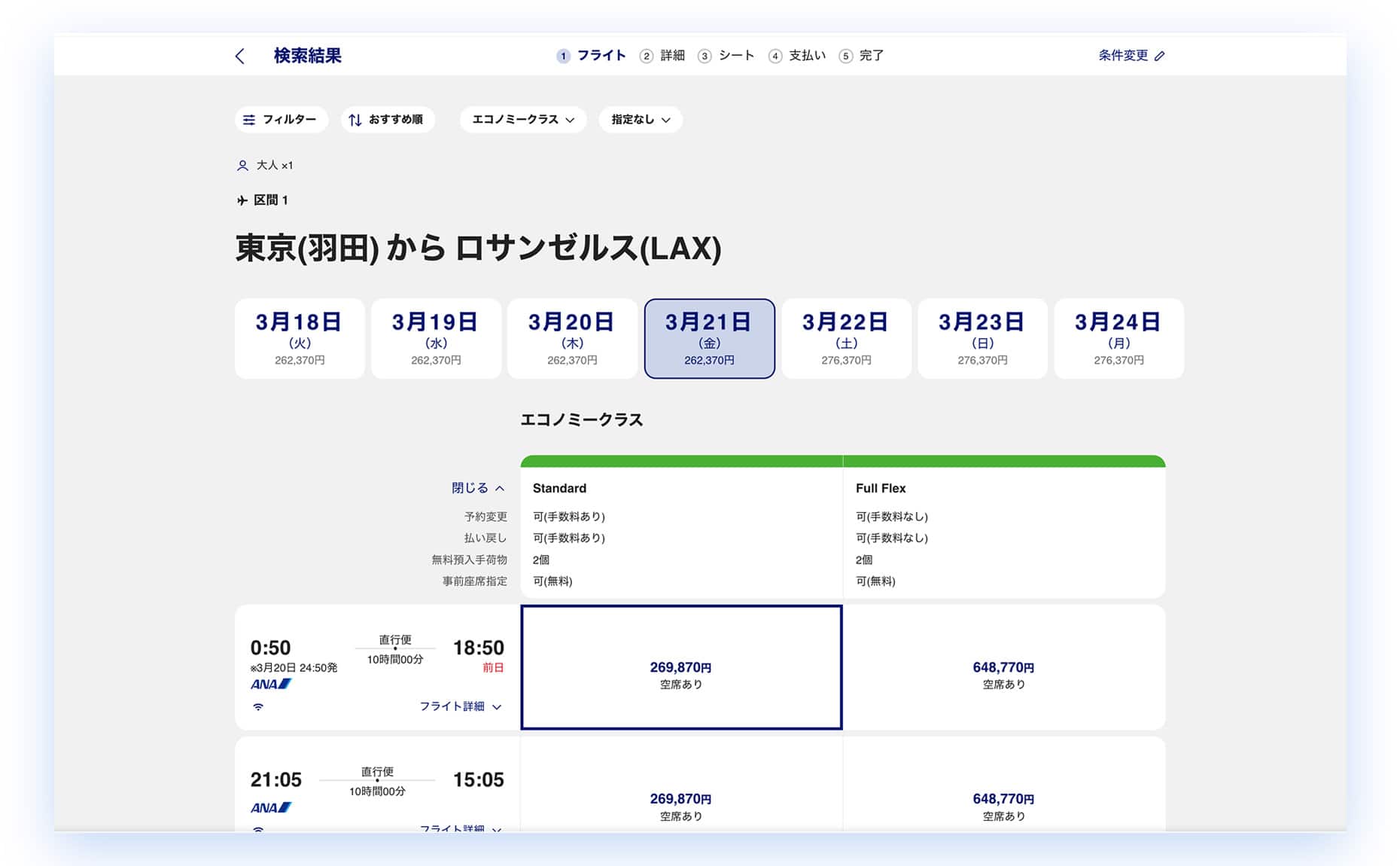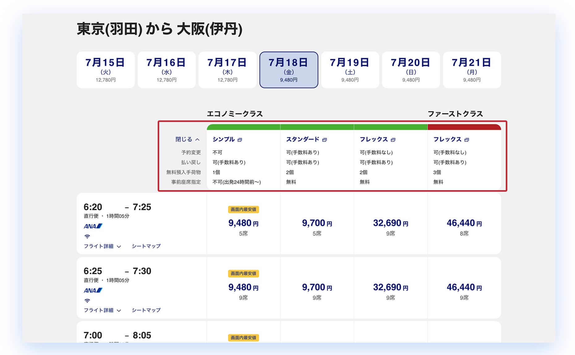 国内線でも、予約変更・払い戻し・無料預入手荷物・事前座席指定など、各運賃の特徴を比較しながら予約を進めることが可能になりました。