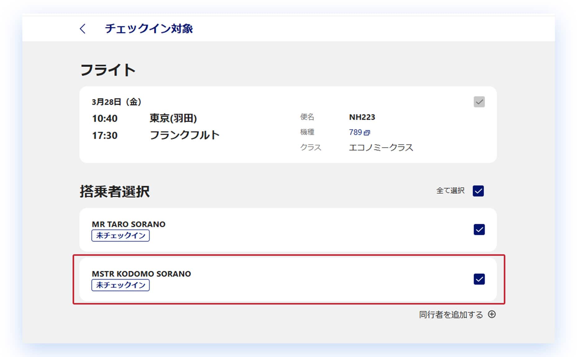 座席を保有しない2歳未満のお子様と、その幼児と一緒にお座りいただくお客様のチェックインが可能になりました。