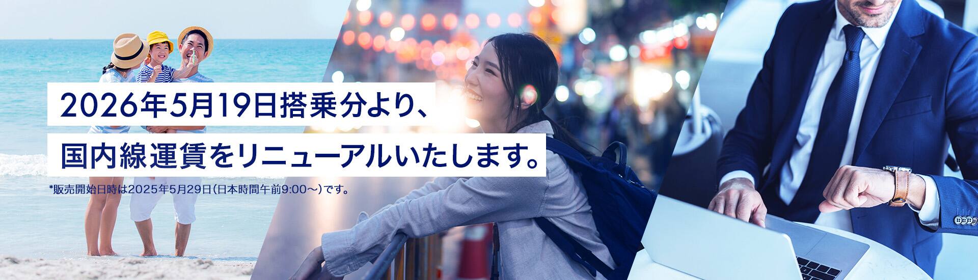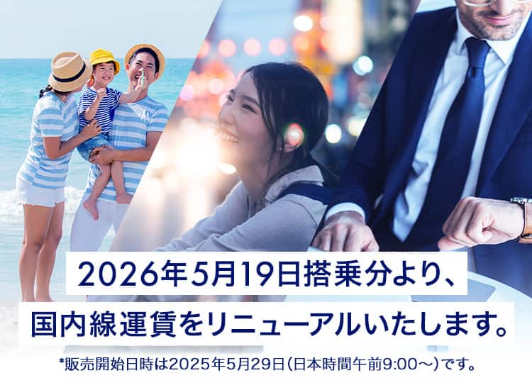 年月日(後)搭乗分以降に適用される運賃は、2025年5月29日(日本時間午前9:00)から予約・販売を開始いたします。