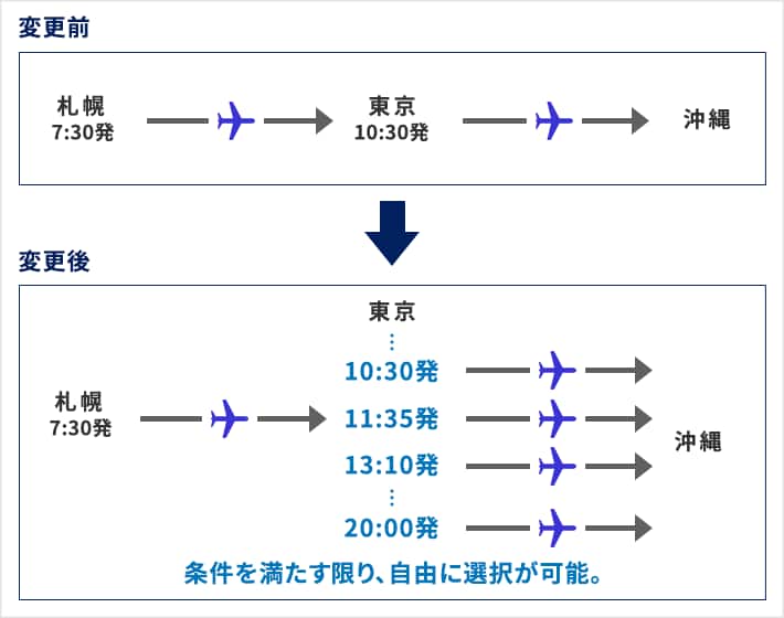 乗り継ぎできる便の選択肢が増える!(24時間以内まで可能)