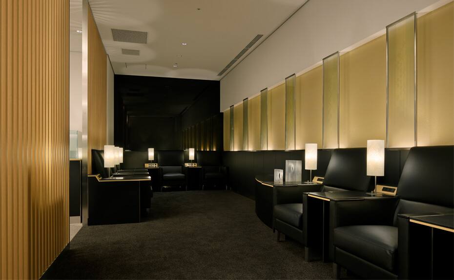 ラウンジに直結する専用保安検査場をご利用いただけます。ラウンジ内には快適にお過ごしいただけるよう各種ビジネスサポート設備や多目的トイレ、おむつ交換台など様々な設備をご用意しています。