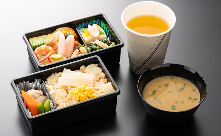 目にも美しい、美味しさを詰めたお食事をご用意して、お客様のご搭乗をお待ちしております。