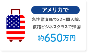 海外旅行中に突発的、かつ偶然に発生したケガ、病気、携行品の破損といった
