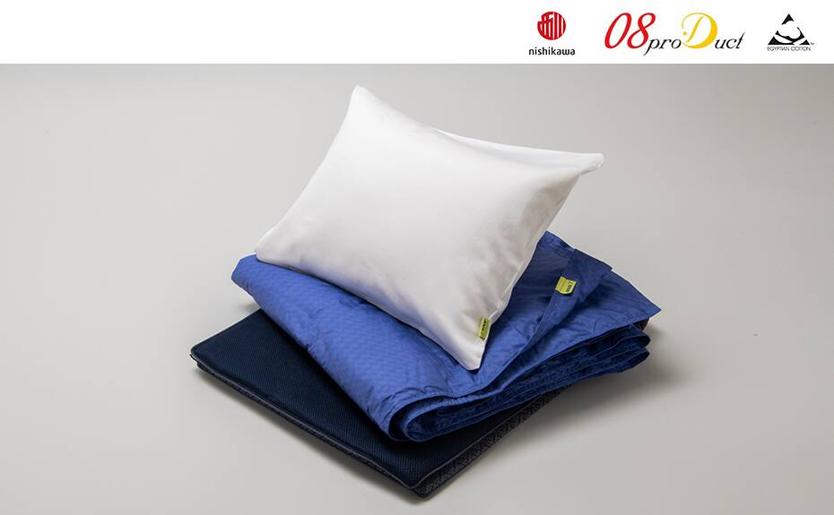 丸八眞綿の羽毛を使用したコンフォーター(掛け布団)を採用しました。枕は、二層構造になっており、羽毛面はふわふわ、ウレタン面はもっちりとした、今までの枕にない感触を実現しました。ベッドパッドは、東京西川「エアーサイクロン®」をANA BUSINESS STAGGEREDシート用にカスタマイズ。独自の特殊三層構造と適度な反発で寝返りが打ちやすく、通気性にもすぐれ、抜群の寝心地です。裏面に滑り止め加工を施しており、お座りいただいた状態でもシートクッションとしてお使いいただけます。
