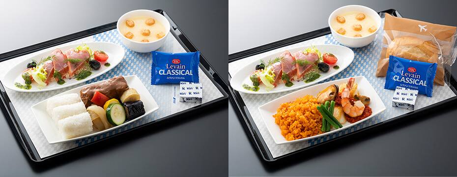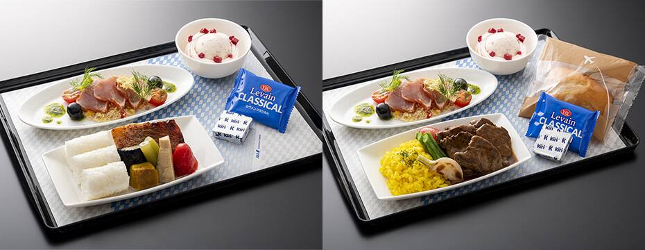 | 2025年12月~2026年2月ご搭乗分 | グリルチキンとバルサミコソース | 黒毛和牛とマコモダケのすき煮(和食) または 真鯛のポワレ マッシュルームのリゾット添え(洋食) |