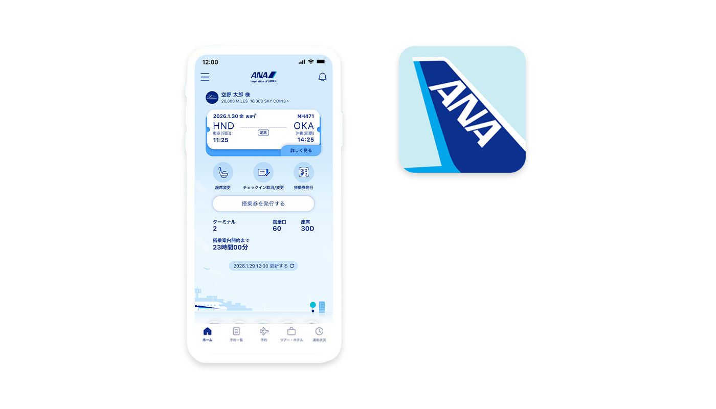 ふたつのアプリで、空席照会・搭乗から、日常のお買い物まで。空と街でのご利用が、スマートフォンひとつでスマートに完結。
