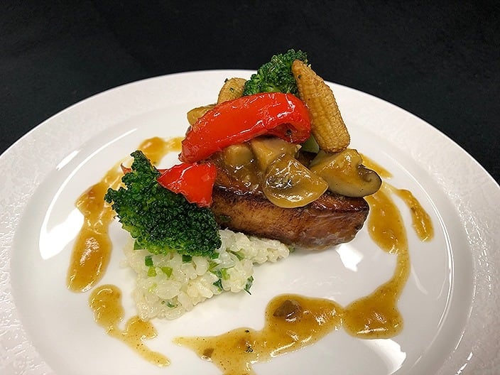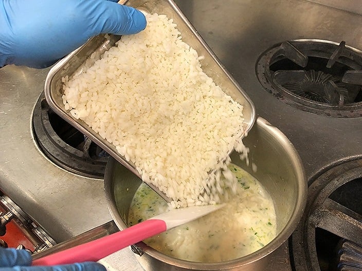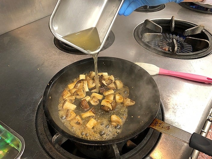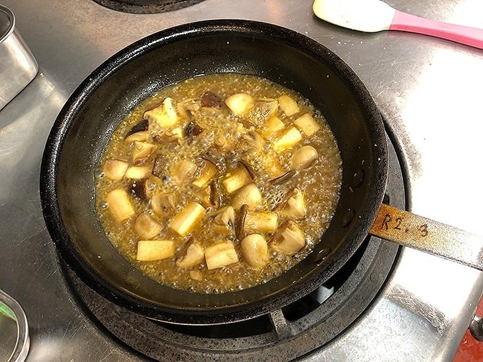きのこの旨みにカレーのアクセントで仕上げたソースと、クリーミーなリゾットが食欲を増します。是非、ご家庭でもお試しください。
