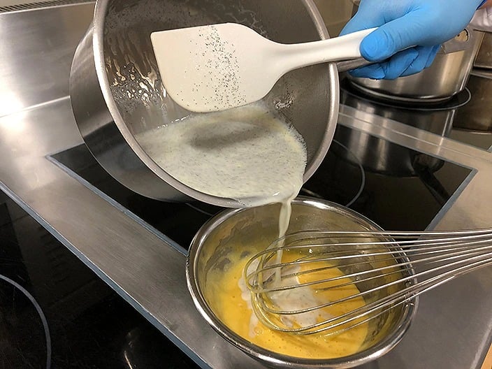 今回はバニラで作りましたが、抹茶などのアレンジも可能です。その場合はグラニュー糖と卵黄を混ぜたタイミング(STEP2)で、材料を加えてください。