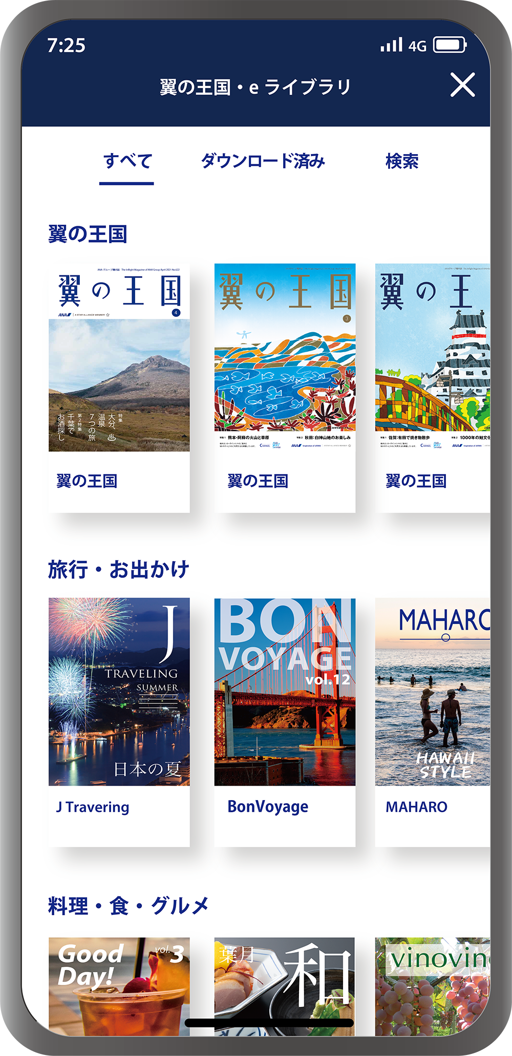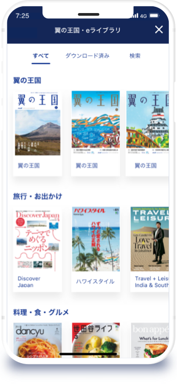 雑誌・新聞 ご搭乗便出発予定時刻の24時間前からダウンロードが可能となり、ダウンロードいただいた雑誌や新聞はお客様ご自身のデジタル端末で到着予定時刻の24時間後までご覧いただけます。