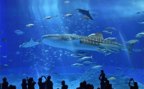 沖縄美ら海水族館は、浅瀬から沖合の黒潮、さらに深海へと旅するような造りになっており、そこにすむ生き物たちに出会う中で沖縄の海の素晴らしさや大切さを体験・体感することができます。単に水槽を並べて見せるだけではなく、様々な角度から楽しめる水槽や各種企画展の開催、館内プログラムの充実等の工夫を凝らすことで、「何度訪れても新たな発見がある、海への興味が尽きない水族館づくり」を目指しています。また、沖縄美ら海水族館がある海洋博公園内には、常時2,000株以上のランを始め、熱帯・亜熱帯の珍しい花や果実を展示している熱帯ドリームセンターや、最大恒星数1億4千万個の美しい星空を再現したプラネタリウムを設置している海洋文化館、無料で観覧できるイルカショー・ウミガメ館・マナティー館など一日滞在しても飽きない施設が多数あります。