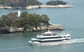 俳人松尾芭蕉が遊覧した名勝の島々の間を航行し、仙台藩主伊達政宗公が月見の宴を開いた在城島の目の前まで行く湾内唯一の松島湾内遊覧です。