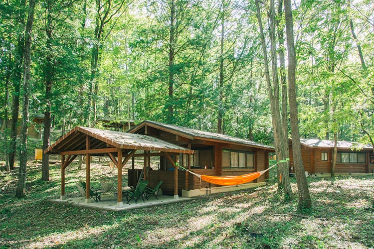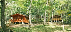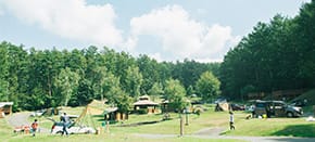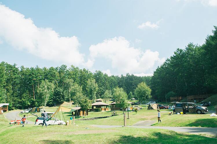 秩父の山並みを望む長尾根丘陵に広がる「秩父ミューズパーク」内のリゾートキャンプ。入浴施設やレストラン、多目的ホールもあります