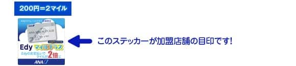 IC(Edy)機能付きのカードやおサイフケータイRをお持ちのANAマイレージクラブ会員の方ならもっとおトク!Edyでのお支払い200円につき1マイルが、さらにEdyマイルプラスなら、200円につきもう1マイル貯まります!