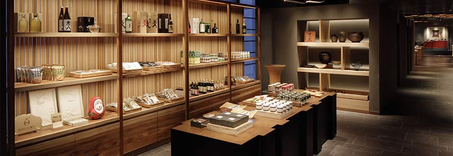 また、坐来大分のエントランスでは、豊後水道でとれる魚の一夜干しや乾しいたけなどの食材をはじめ、柚子胡椒やドレッシング等の調味料、お酒、お菓子まで、大分のこだわりの品々をセレクトして販売しております。