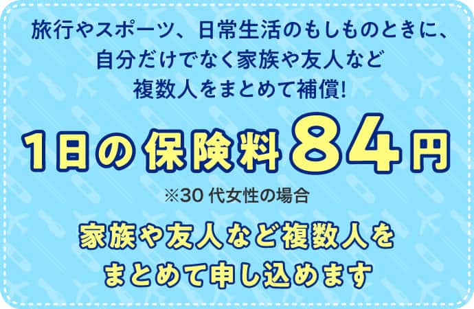 保険期間が長いほど、1日あたりの保険料が安くなります。詳しくはお見積よりご確認ください。