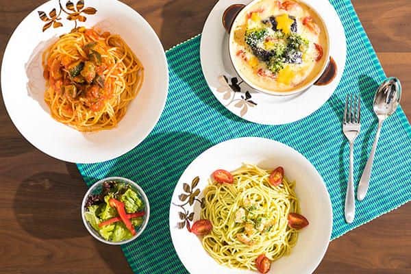 お買い物中にちょっと休憩できるカフェスペースを併設。ちょっとコーヒーを一杯からパスタなど本格的なランチメニューまでお気軽にお楽しみいただけます。