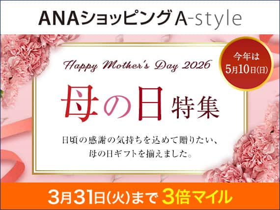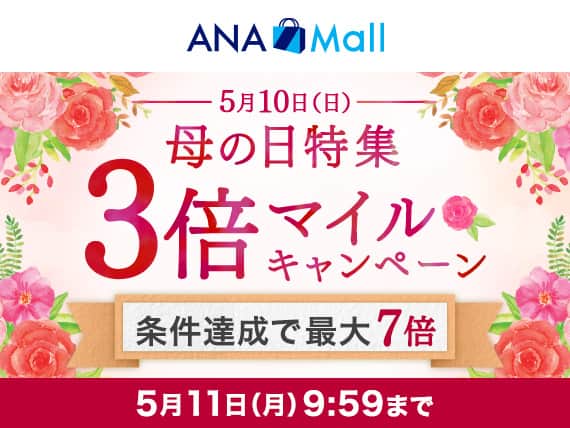 期間中、ANAマイレージモール経由の上ANAカードで決済いただくと、合計3倍マイルの対象になります。(ANAマイレージモール分 + ANAカードマイルプラス分)