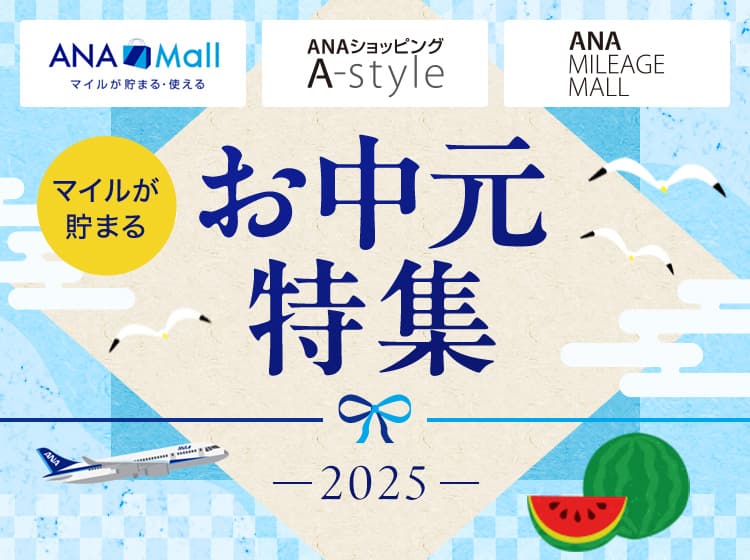 マイルが貯まる&使える「ANA Mall」「ANAショッピング A-style」、マイルが貯まる「ANA マイレージモール」では夏のご挨拶にぴったりな商品を多数ご用意しています。日頃の感謝の気持ちを込めて、この機会にぜひお買い求めください!