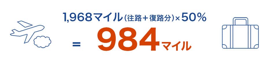 1,968マイル(往路+復路分)×50%=984マイル
