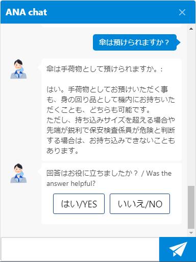 一部のお問い合わせはLINEアプリを利用したANAメッセージサービスにて承ります。