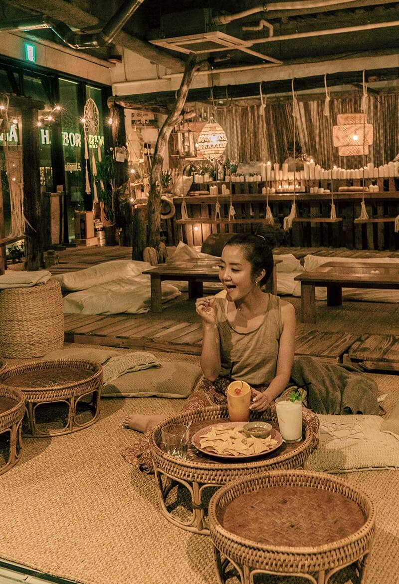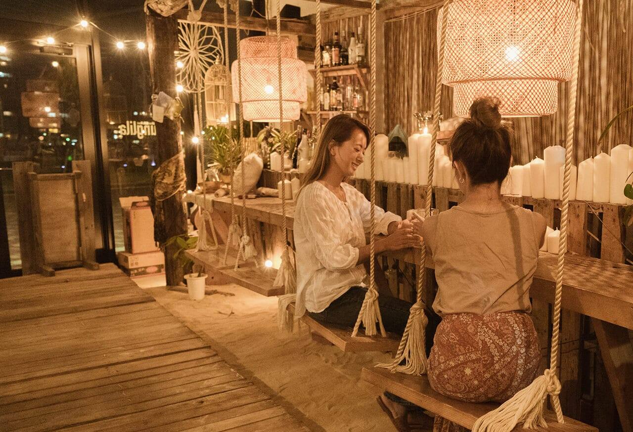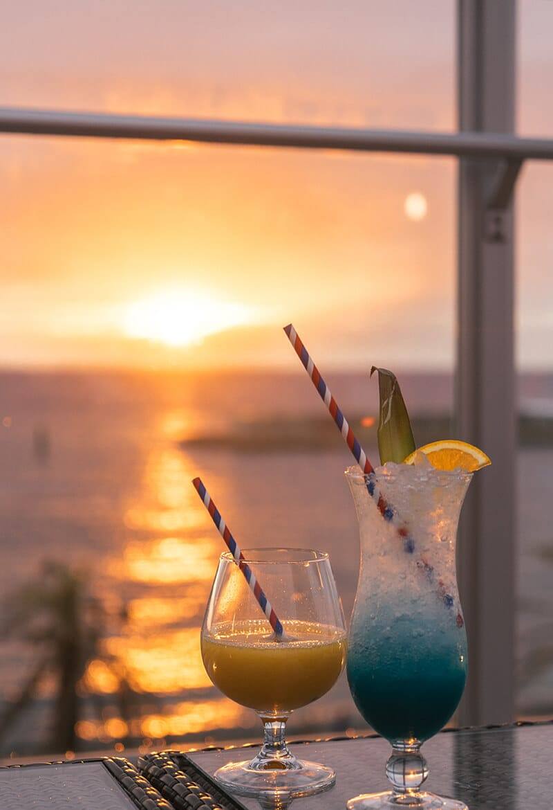 目の前の海に夕陽が沈んでいく最高のロケーション♡ホテルのバーはオシャレで少し緊張するけれど、カジュアルで入りやすい雰囲気♪ドリンクはどれも見た目かわいく、味も美味しく大満足◎