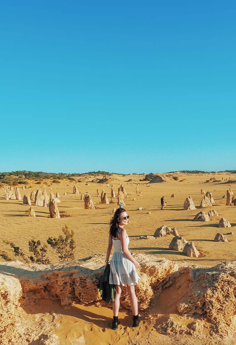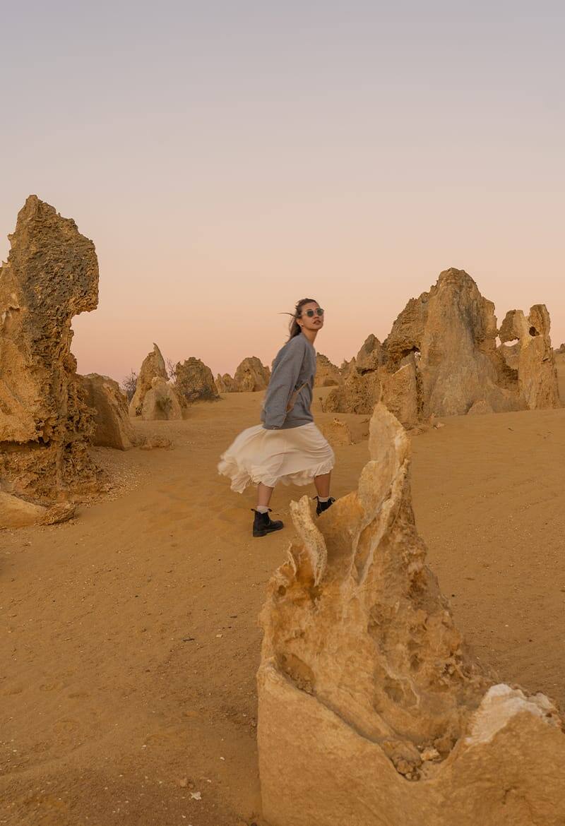 数々の絶景が見られるパースの中でも有名な、奇石群が広がるピナクルズ。地球の不思議を肌で感じる、神秘的で壮大な景色に感動…!1つとして同じ形の岩はなく、年々変化してしまうので、お気に入りの岩を見つけて楽しんで!サンセットタイムには、夕陽で赤く染まった砂漠に岩の影が伸びる美しい光景を見ることもできます。